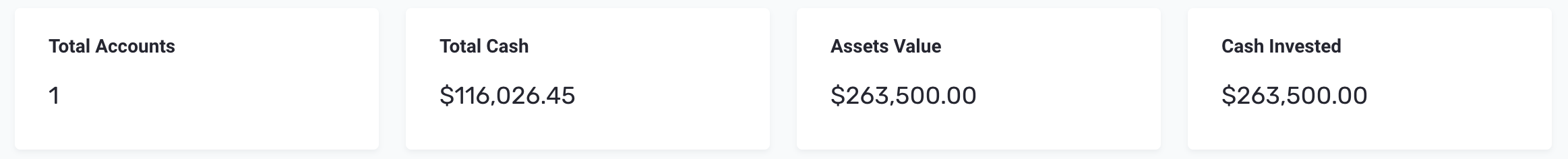 - Cash Invested - Sums the initial value for all investments for your selected client accounts