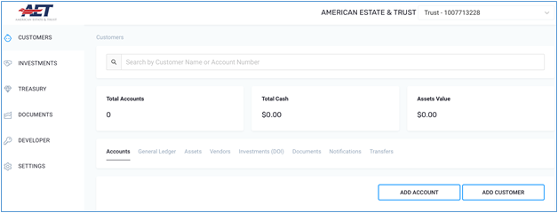 3. You will arrive on the Customers tab. From the Customers tab, click on Investments – the second item down on the menu on the left.