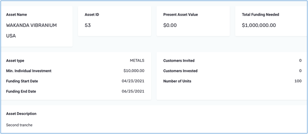 Funding End Date is the date as of which funding can no longer be accepted for the asset. (Note: Funding End Date must be a date in the future.)