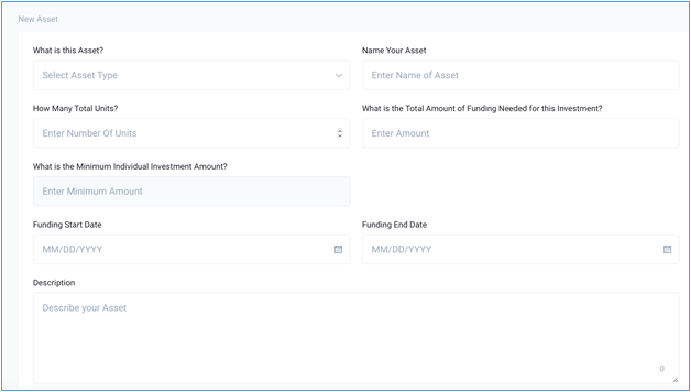 Name Your Asset is an open field. Enter in the name of the entity raising funds.